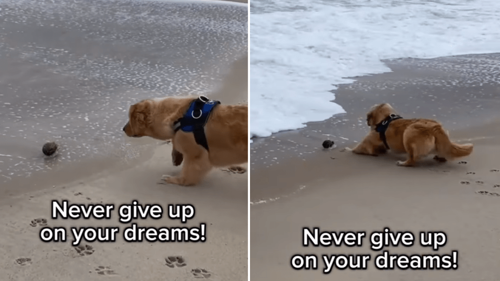 Video shows Golden Retriever bravely battling waves to claim treasure at the beach