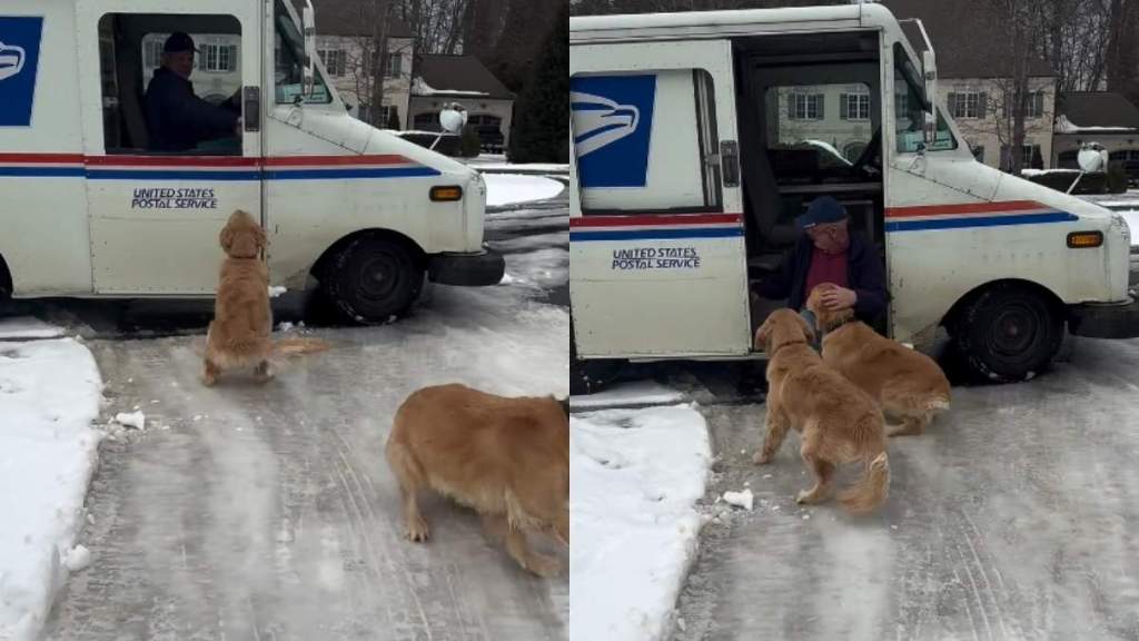 A pair of Golden Retrievers has turned an ordinary mail delivery into a heart-melting moment, and the internet can’t get enough of it. A recent video shared by the Instagram account @makersonhermark captures the dogs’ pure excitement when their favorite mailman arrives.