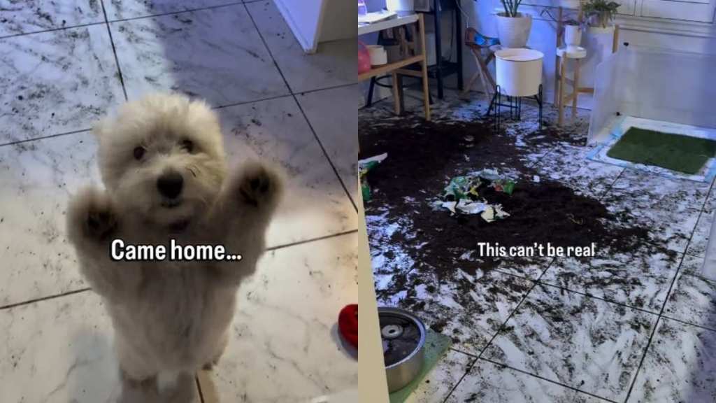Mud and soil are spread across the floor, showing just how much digging and exploring the terriers had done while unsupervised. A final caption in the video reads, “Speechless… thanks, Westies,” summing up the owner’s reaction to the unexpected home makeover.