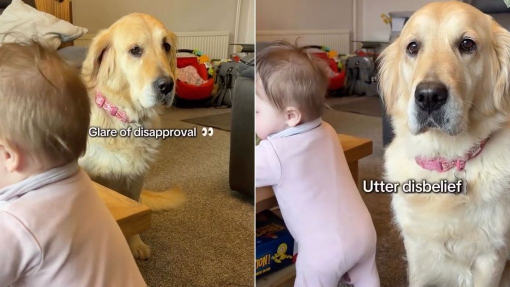 She even gives the parent a “glare of disapproval” before “getting up” and sitting behind the little human sibling to protect her from a fall. After this, the pooch gives a “final warning” to the mother to move the baby, making the mom feel like “nothing humbles you like a dog judging your parenting.”