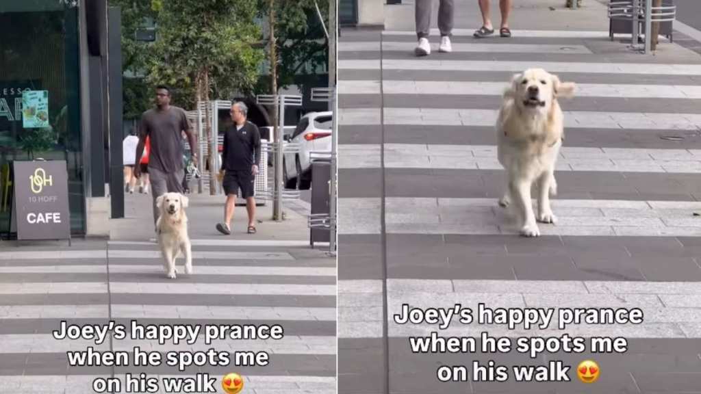 Dog can barely contain his excitement in a sweet Instagram clip showing a Golden Retriever spotting his mom mid-walk. The wholesome moment follows Joey as he notices her from across a city sidewalk and instantly switches from calm walking to an eager little prance.